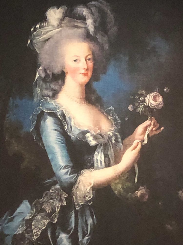 「箱根ガラスの森美術館」の「ヴェネチアン・グラス美術館」にて、宮廷衣装のローブ・ア・ラ・フランセーズに身を包むマリー・アントワネットの肖像画です。🫅