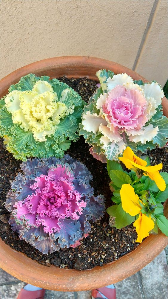 ハボタンとパンジーが仲良し😃🍒😃です🍀