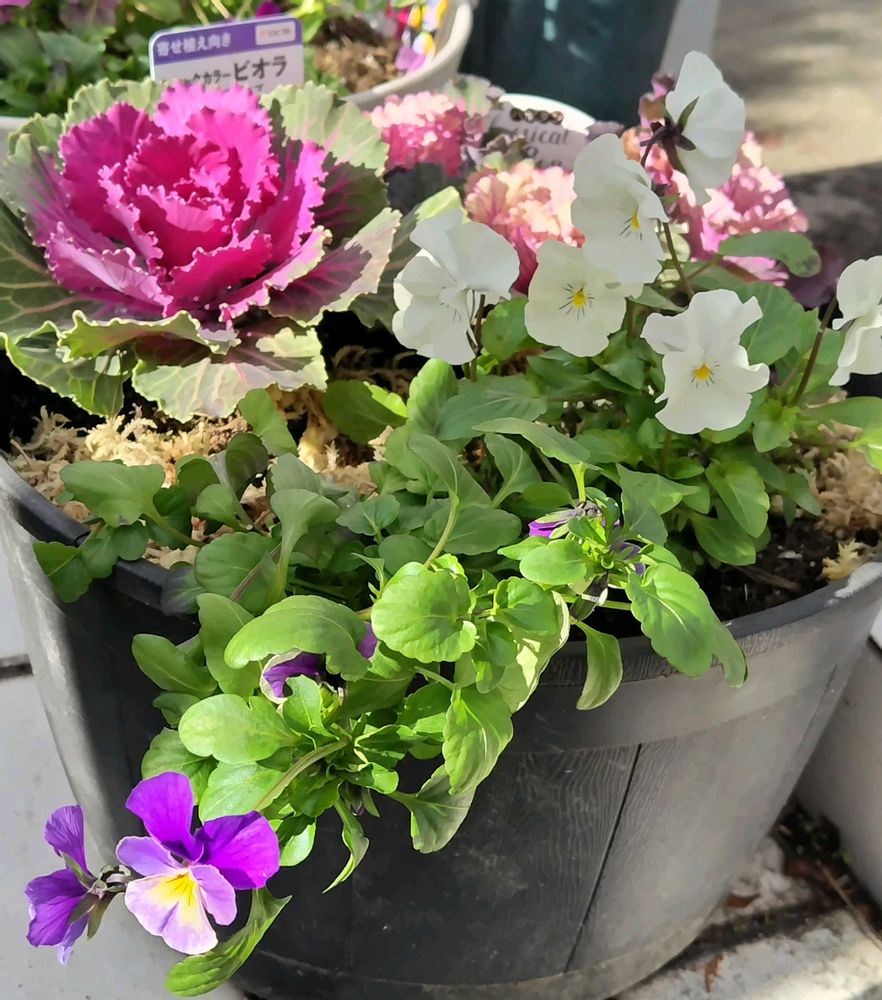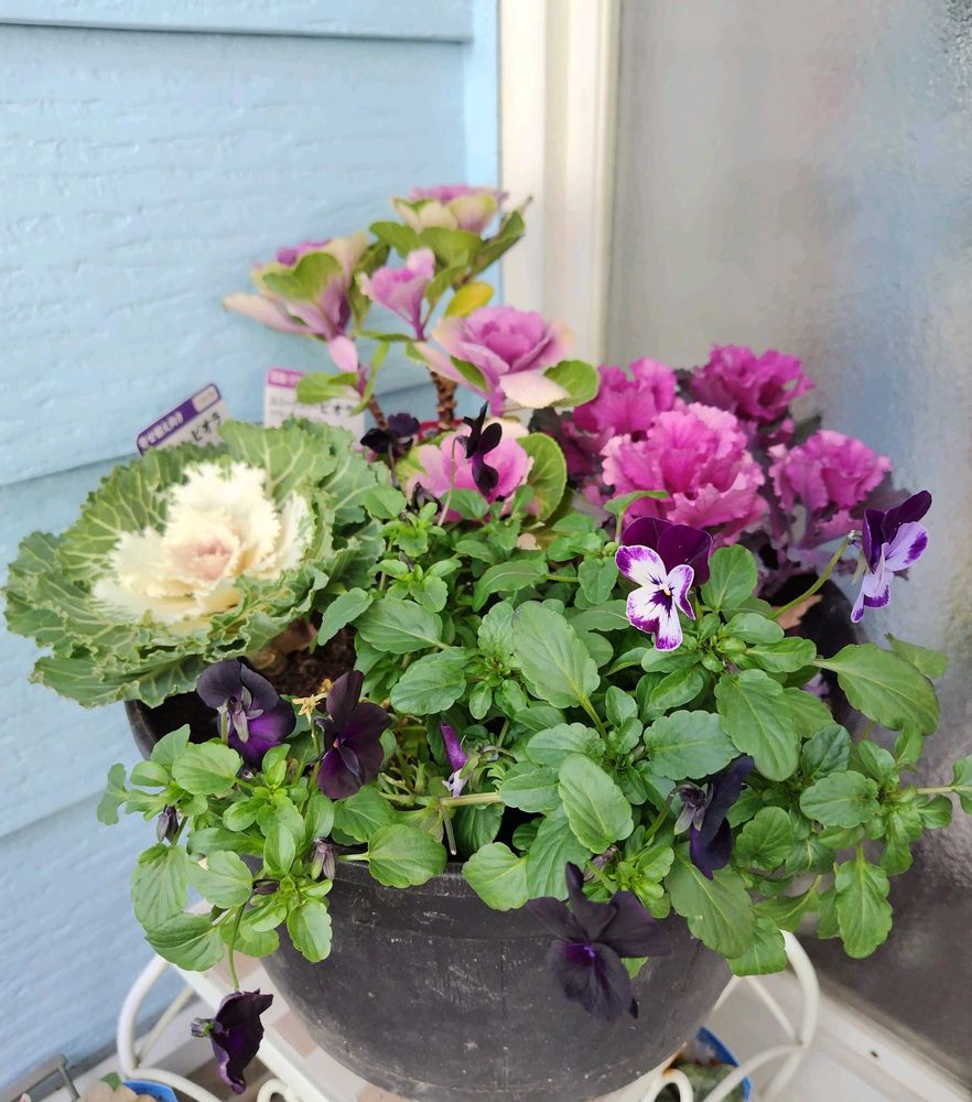 葉牡丹とパンジー・ビオラの寄せ植え①