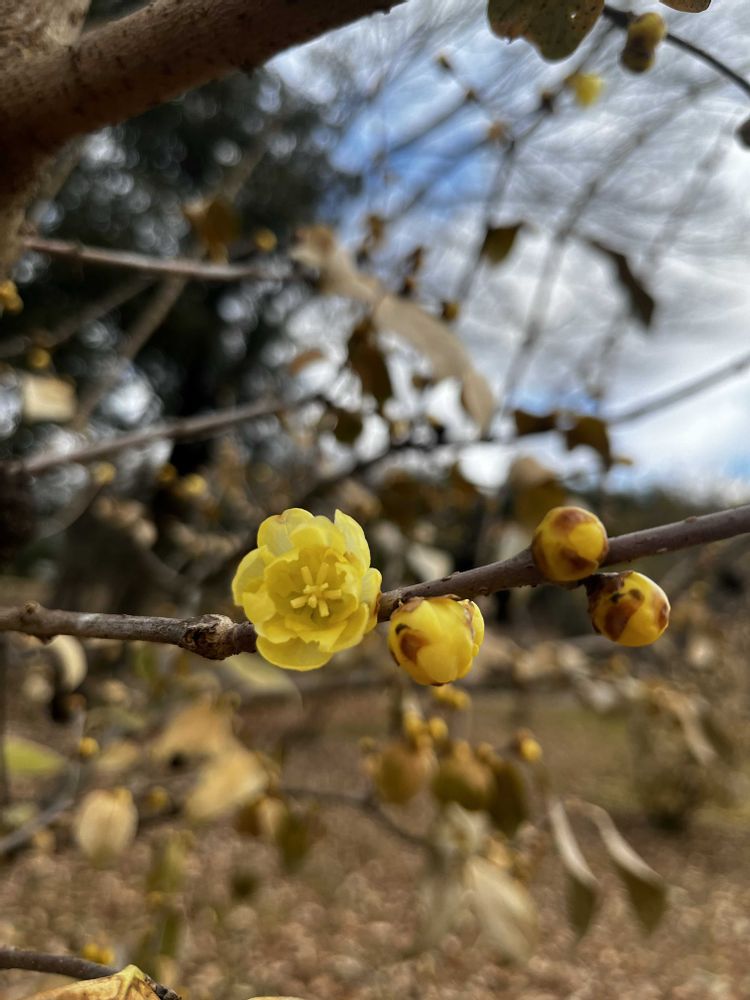 近所の里山公園の蝋梅はまだ一分咲ですね
