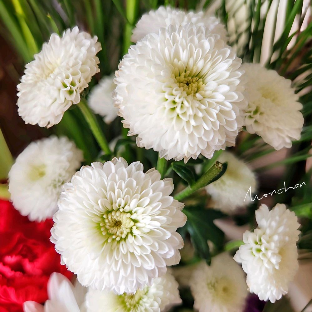 下のスプレーマムが淡くて可愛らしい色で🤍🩷😊気になっていたお花屋さんで出会いました🚗