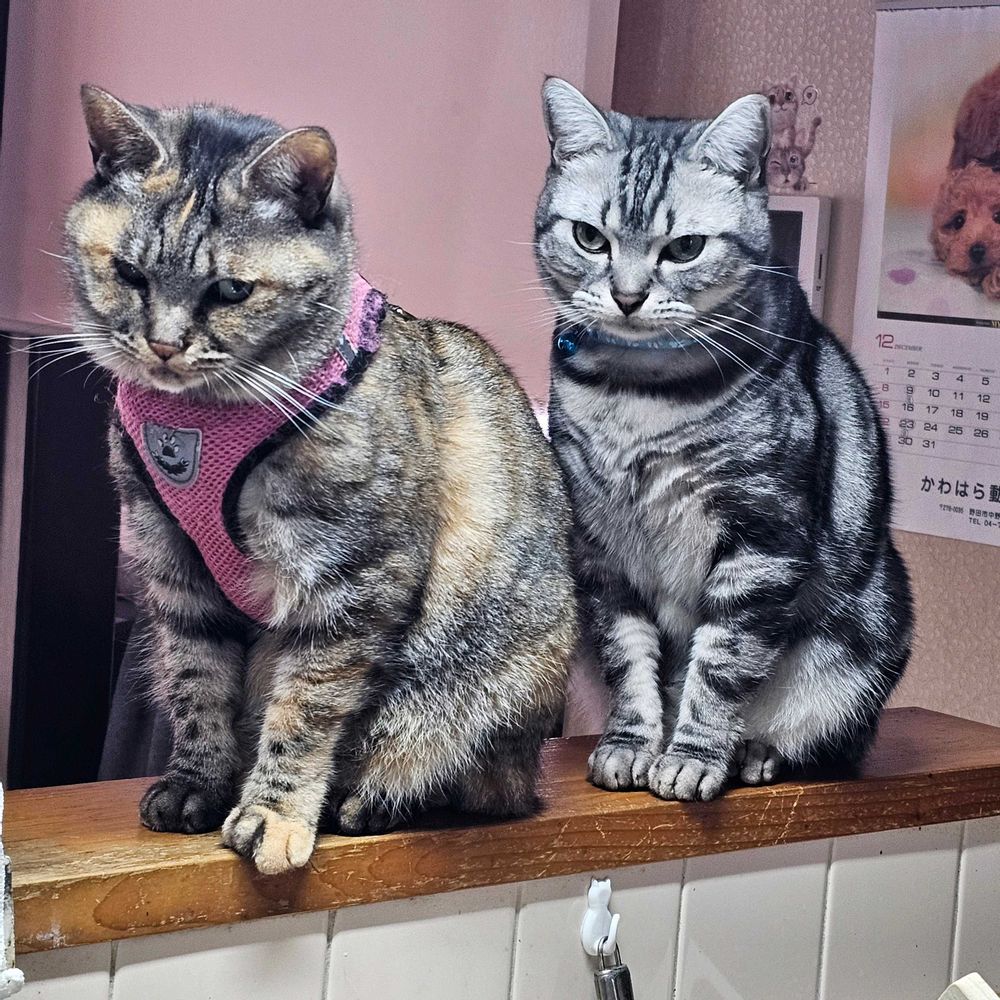 サクラ🐱はあまり食べないのですが丸々していて、翔平🐱はとてもよく食べるのに全然太らないのです✌