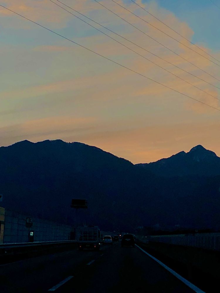 【番外編】本日1月5日16:40頃、大阪へ帰る途中、伊勢湾岸自動車道🛣️にて「夕日」をパチリ!📸🌇😊😄✌️