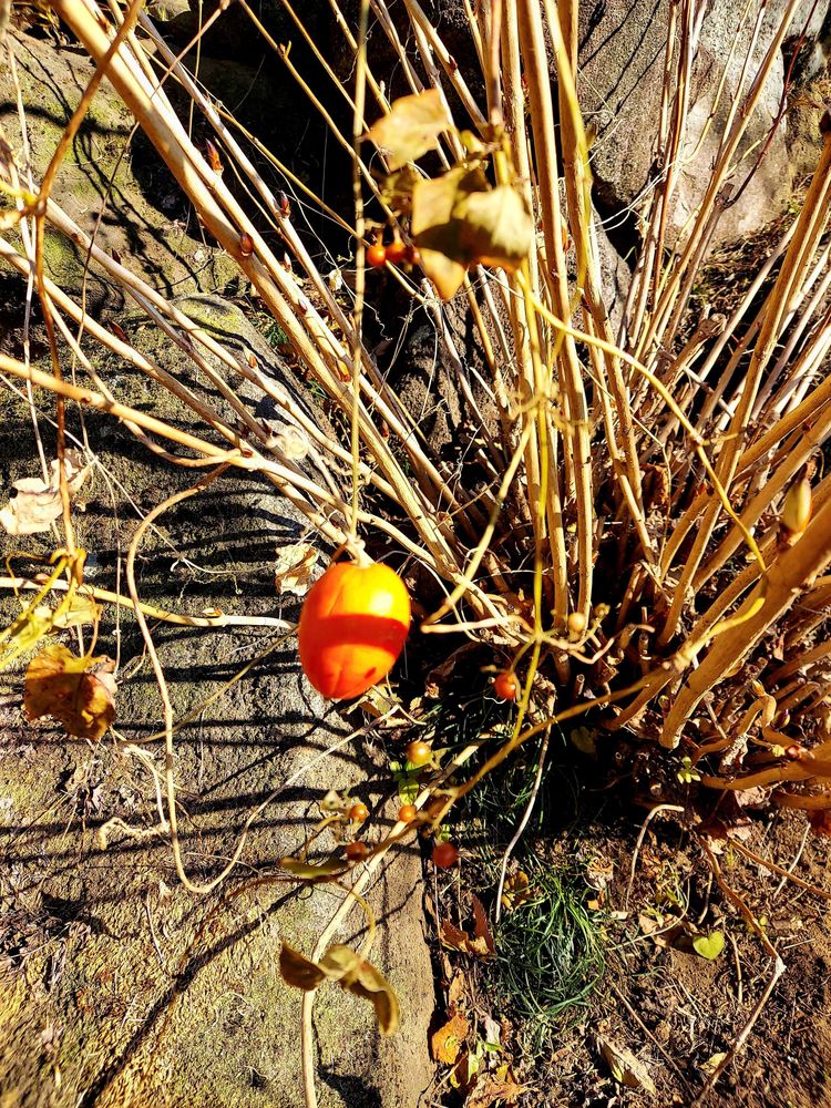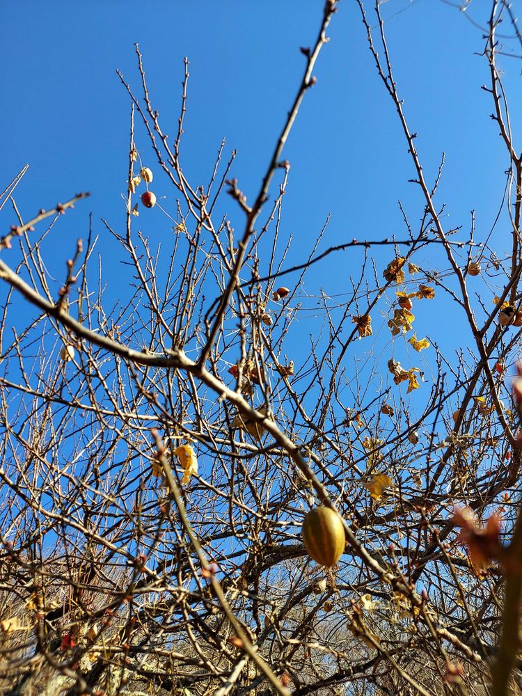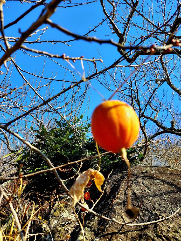 まだ固い蕾ばかりの梅林にたくさんぶら下がっていたカラスウリの実🟠が灯り💡の様でした😊