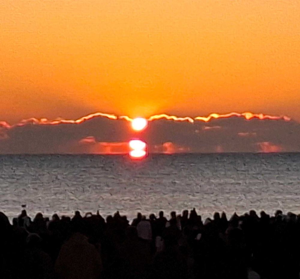 ☝️…いつもは🌊が多いのですが珍しく波がなく穏やかな🌅でした~🍡の様な🌞で☺️