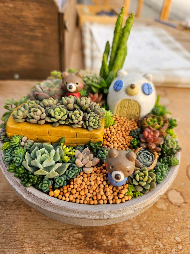 saori.さんの多肉植物,多肉植物寄せ植え,オーブン粘土の投稿画像