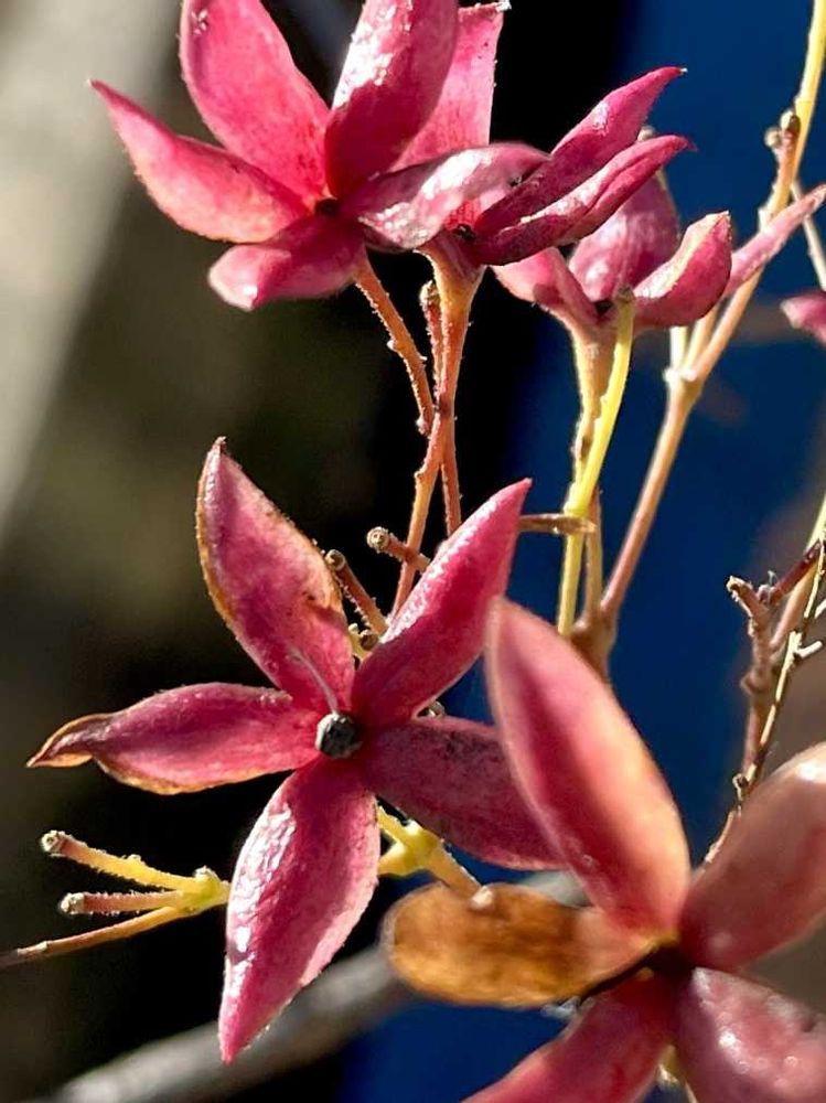 冬に見られる赤いクサギのガクです。枝や葉を傷つけると臭い匂いがするそうです。でも近くにいるだけなら特に匂いはしません。
