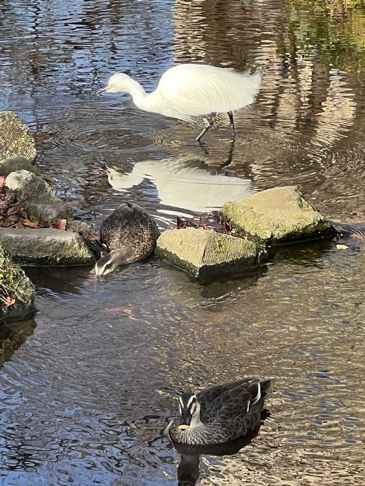 鴨可愛いですね!白鷺も綺麗ですね!
