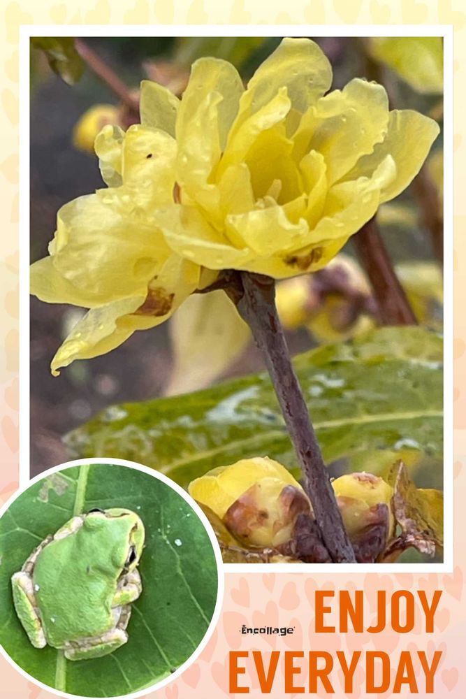 🌼ロウバイ良い香りが飛んできそう😍👌 マーブル椿も🌹のように美しいですね~ෆ╹ .̮ ╹ෆ