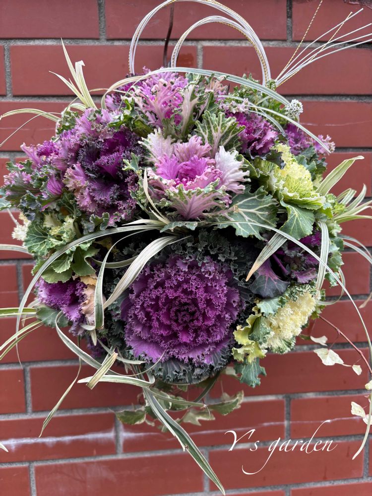 くまマダムさんの葉牡丹(はぼたん),葉牡丹の寄せ植え,スリットバスケットの投稿画像