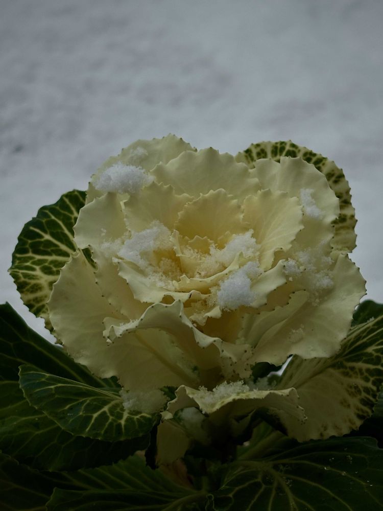 葉牡丹に雪が…☃️❄️