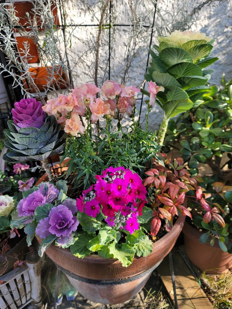 色々と冬のお花を入れ込んだ寄せ植え✨🌿