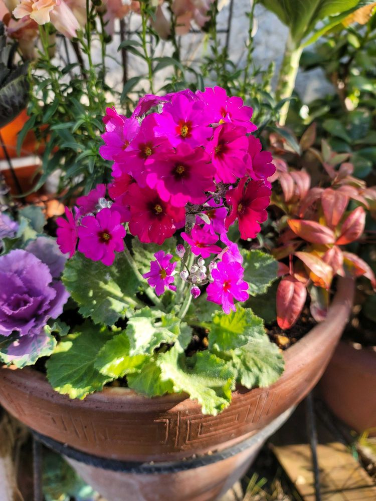 玄関アプローチ,葉牡丹,プリムラ マラコイデスの投稿画像