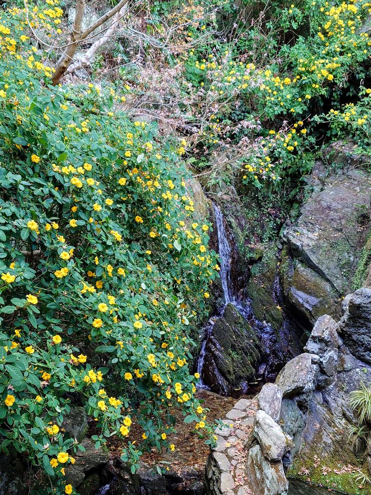 此処のお庭は11月中旬~3月上旬まで咲いているのと滝の横なので葉が生き生きしてて綺麗ですよ💚💛💚💛💚