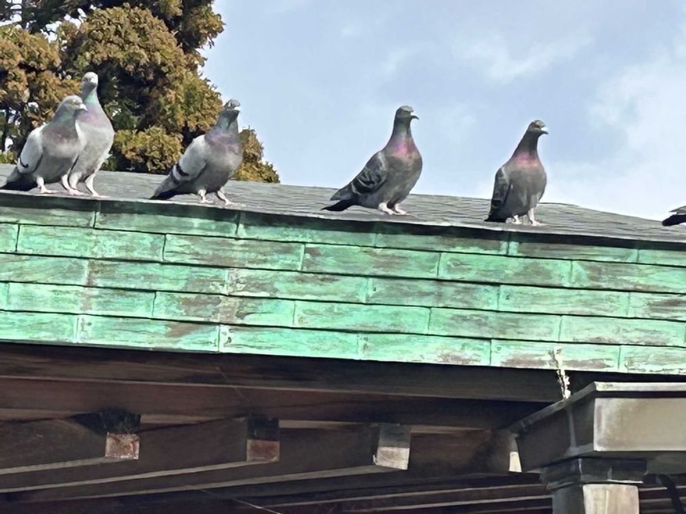 昨日、初詣に行った神社⛩️に、十月桜が咲いていました‼️そして、神社の屋根に鳩の群れが(笑)