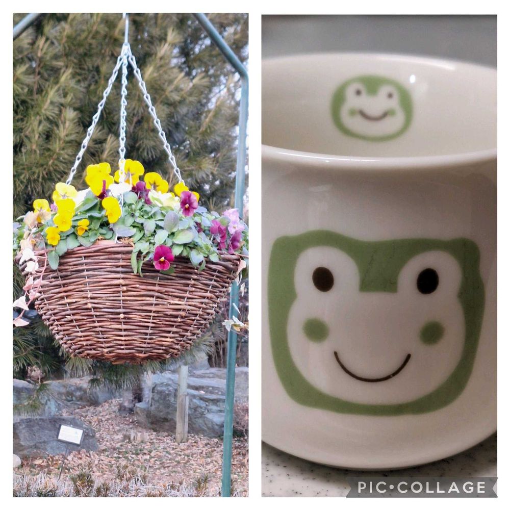 2枚目も🐸植木鉢に🐸ちょっと足が折れてるんですよね…