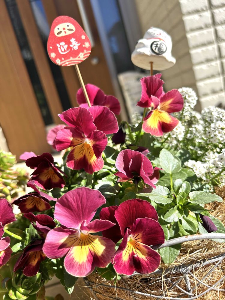 玄関前でパンジープティシャトン•オランジアが咲いています❤️🧡