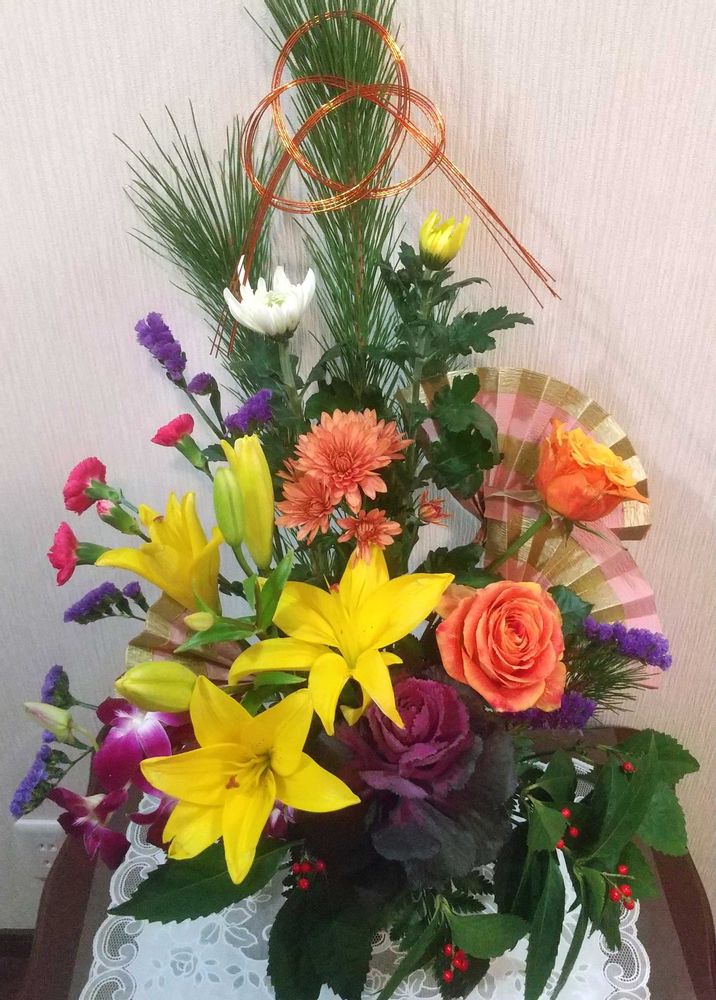 フラワーアレンジメントのお稽古で暮れに挿して来ました。