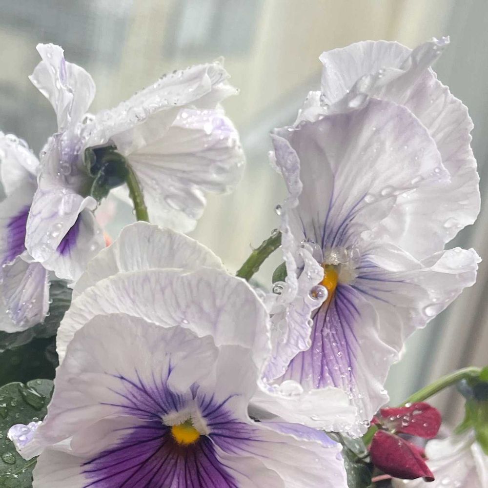 1️⃣2️⃣雨に濡れた白い大きなパンジー