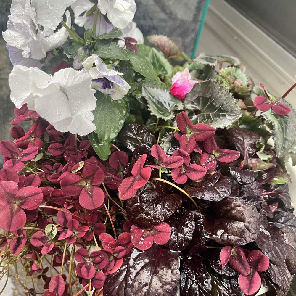 3️⃣その寄せ植え達 アジュガ、シクラメン、パンジー クローバー