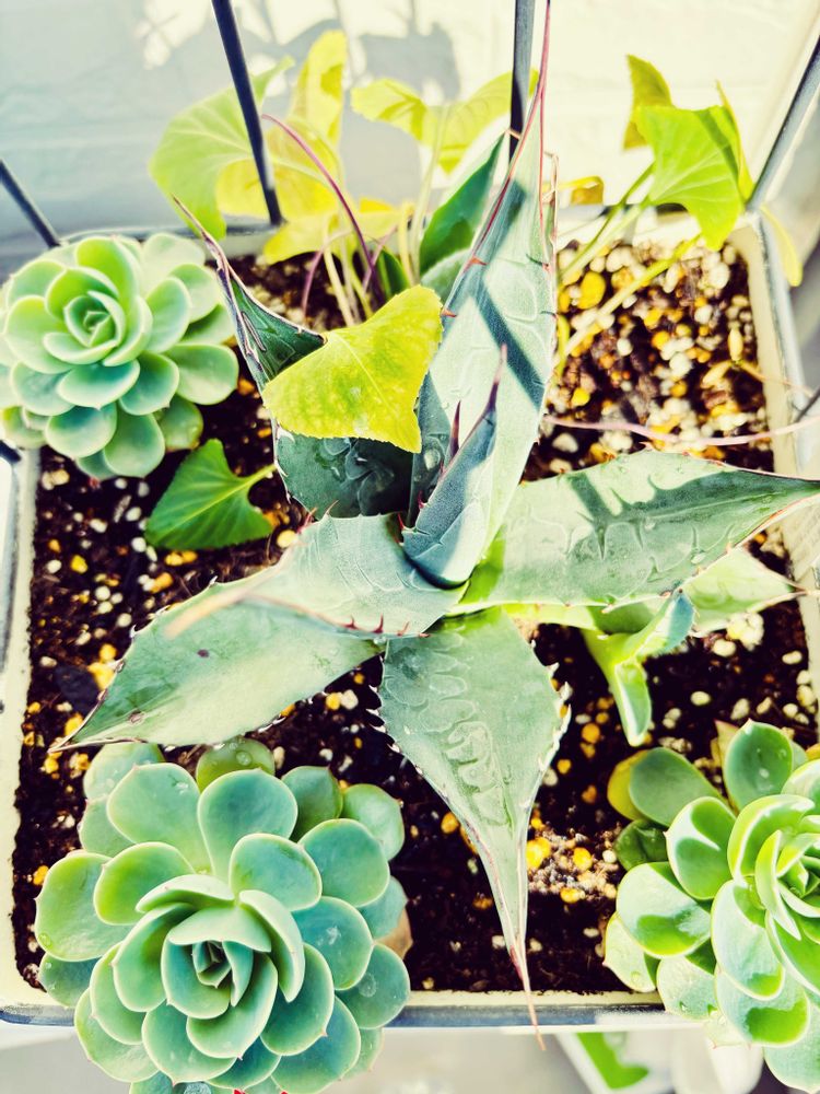 ほぼ 培養土の土に 七福神様とアガベとスミレチャン😙