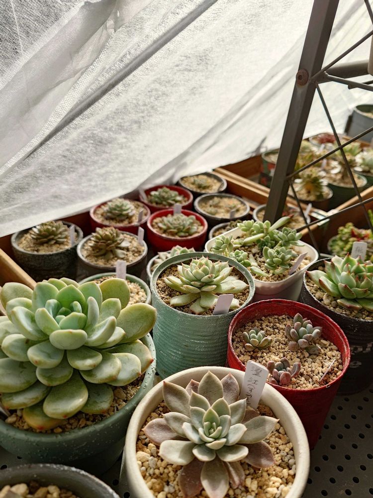 ベランダの多肉棚も木製トレイも不織布を掛けてしまってタニパトもサボり気味😣