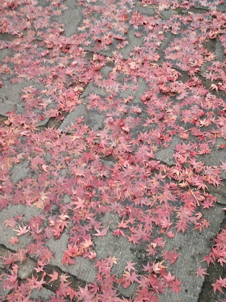 ❶雨上がりの道に真っ赤なモミジの絨毯が🍁🍁🍁🍁🍁