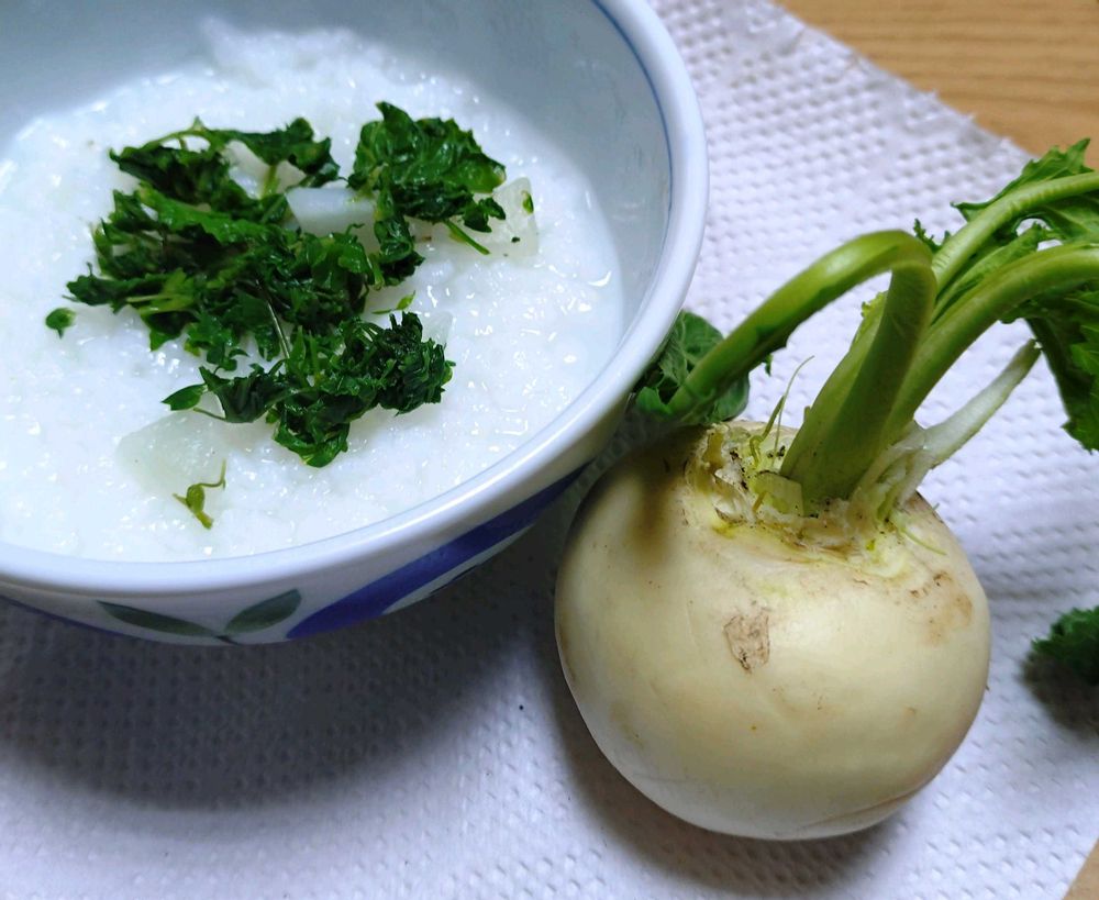カブを入れた七草のうちのいくつかを入れた七草粥を頂きました。