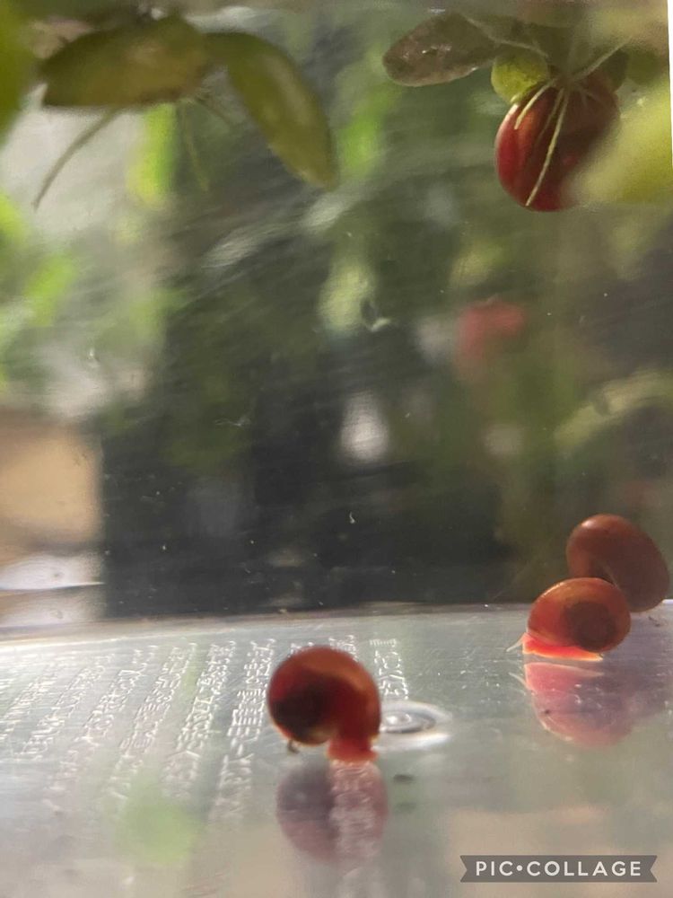 この赤い巻き貝🐚貰って来た時は5.6個だったけど今は水槽でウジャウジャ🙀