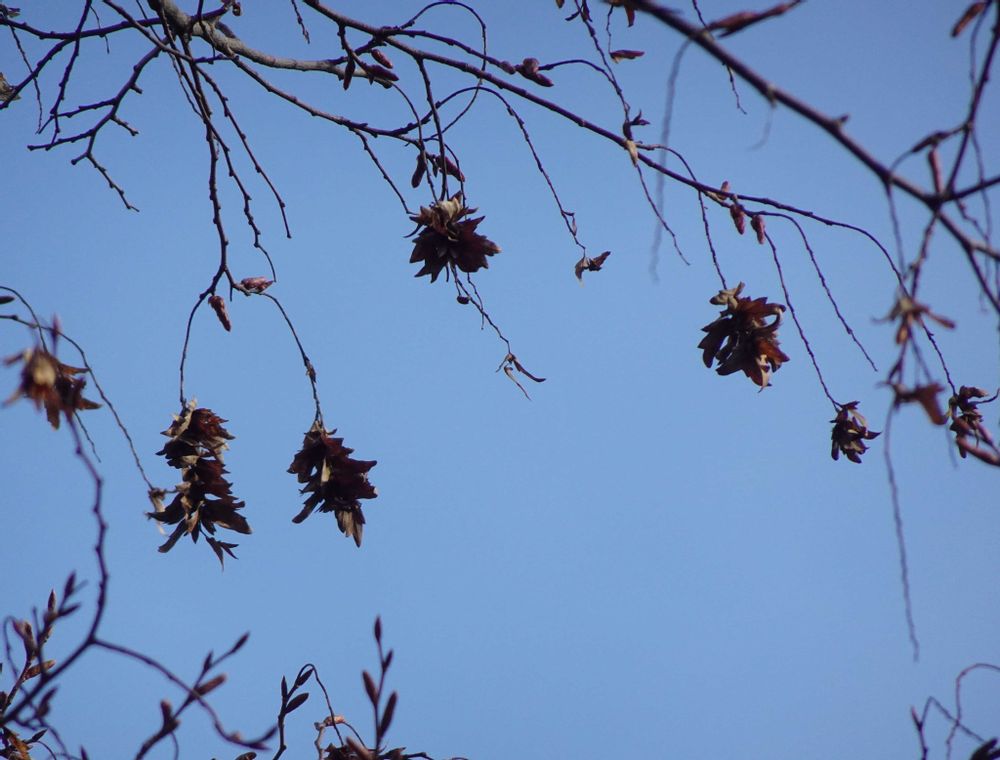 枝の先に伸びたのは果穂が落ちた軸のようです