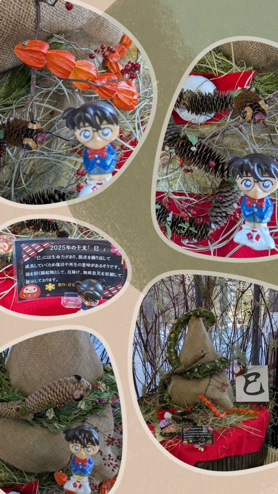 百合が原公園の蛇の飾り🐍松ぼっくりや鬼灯で作った蛇が素敵でした✨