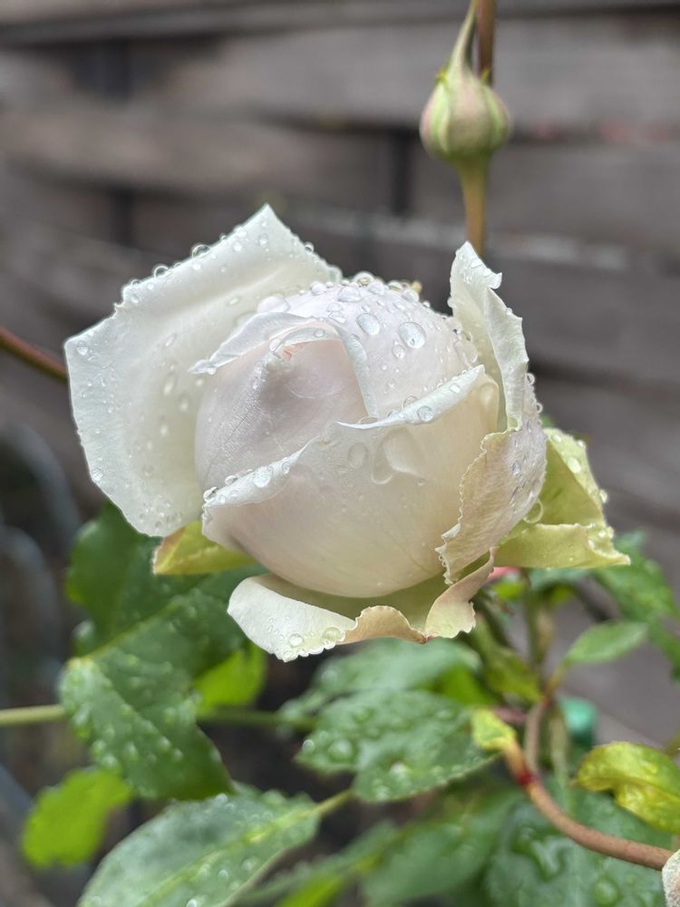 久しぶりの雨に濡れて、寒いのか硬い蕾のまま何日も。