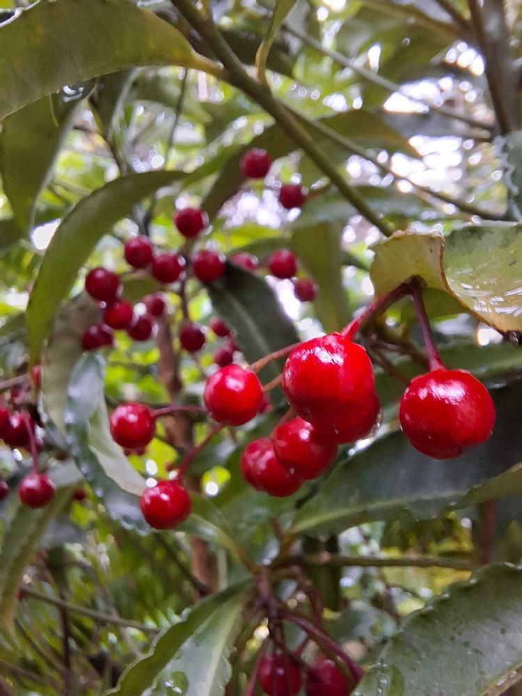 雨上がりで、雫をまとったマンリョウの実🔴でした⤴️🤣