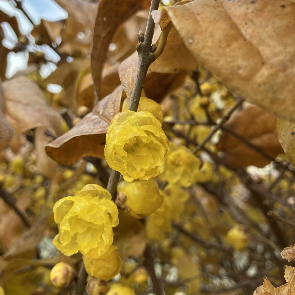 ロウバイの花綺麗ですね〜黄色い葉が残る時期にロウバイが満開✨珍しいですね🤓🙌👏🫶