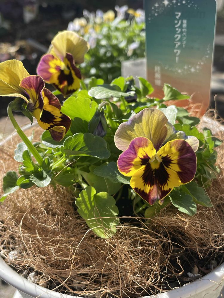 見たことないパンジーがあると思ったらマジックアワーがぜんぜん違う色合いになっていて驚き😂