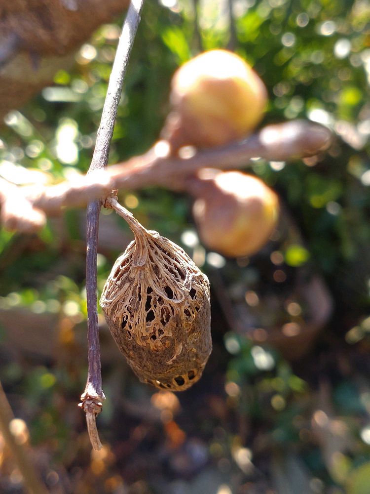 果実の殻がランプカバーのようで面白い模様になってます😁
