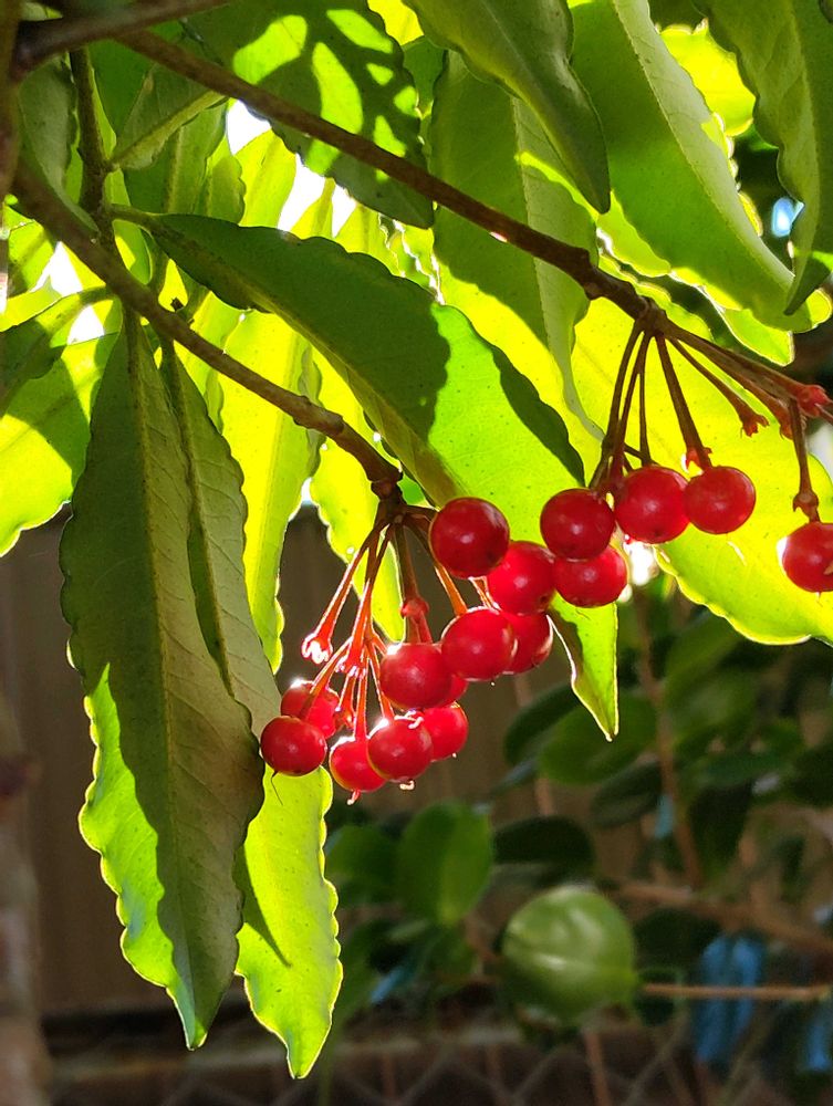 光を受けて緑も赤もなんと美しい😍💖‼️