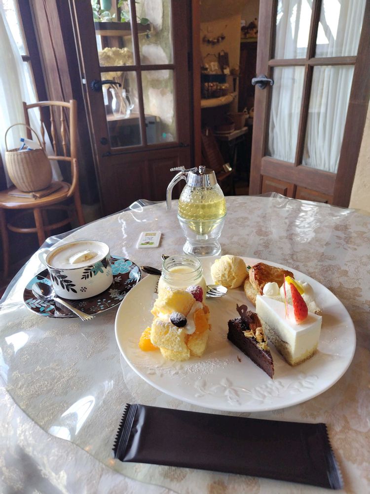 中にはカフェも有り「女王のスペシャルスイーツ」コーヒー付き¥2.490を注文 コーヒーは蜂蜜コーヒーにして蜂蜜は「アカシアと蜜柑のブレンド」でした。