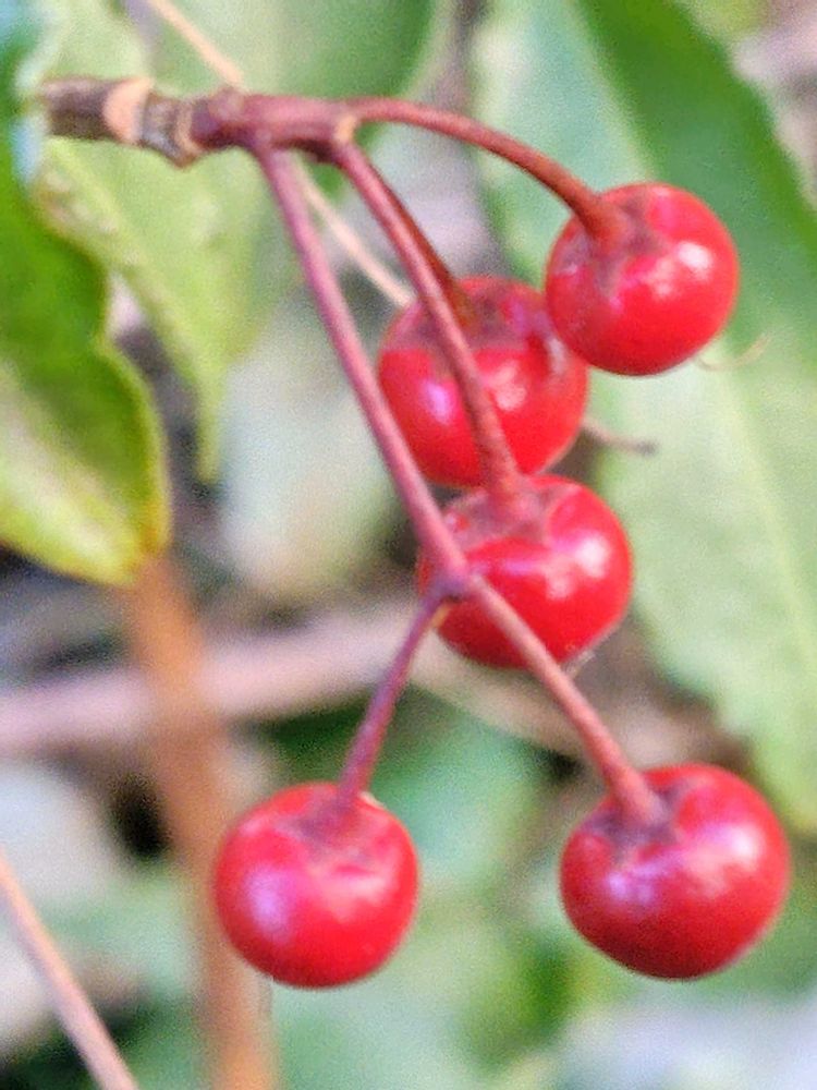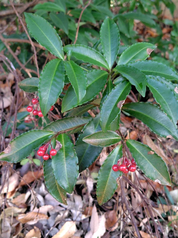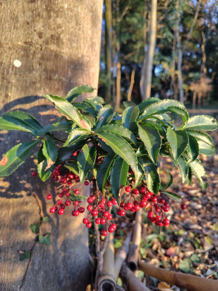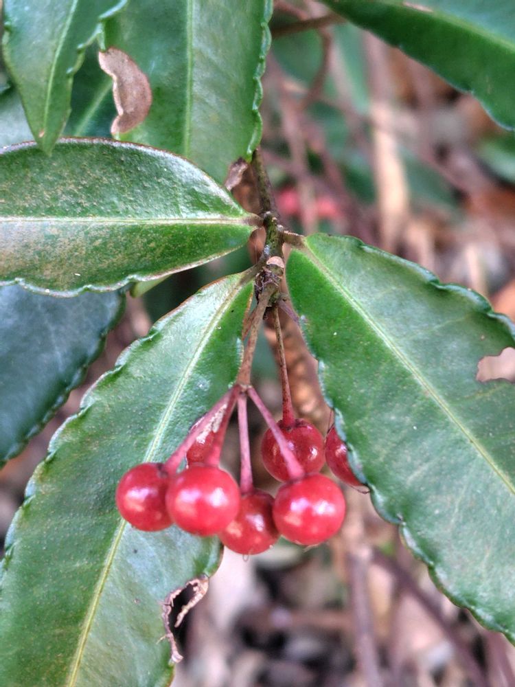 果実は6〜7mmの液果で、10月頃赤く熟して、2月頃まで枝に見られる。
