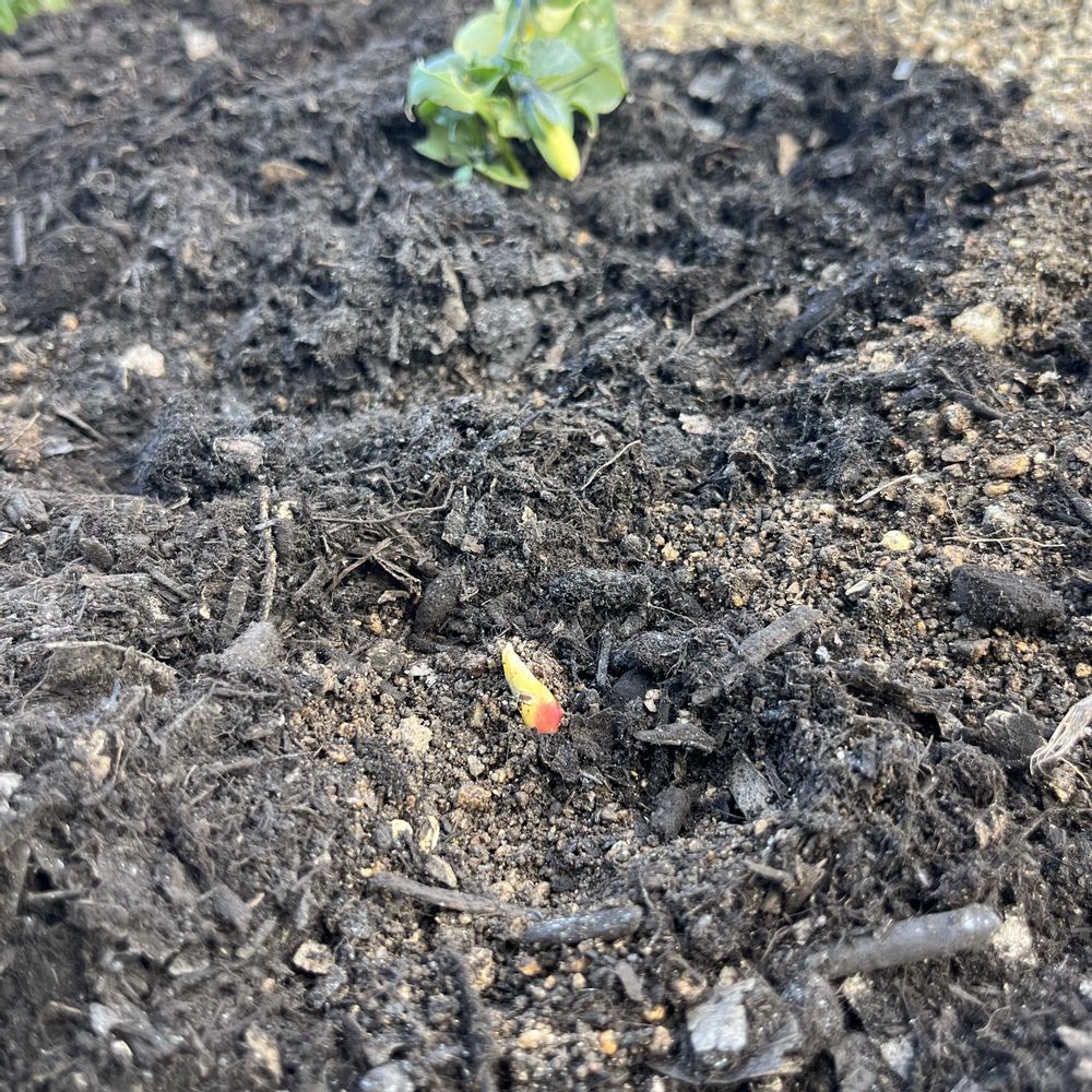 チューリップの芽が顔お出してる❤️🔥頑張れ、頑張れ🌷
