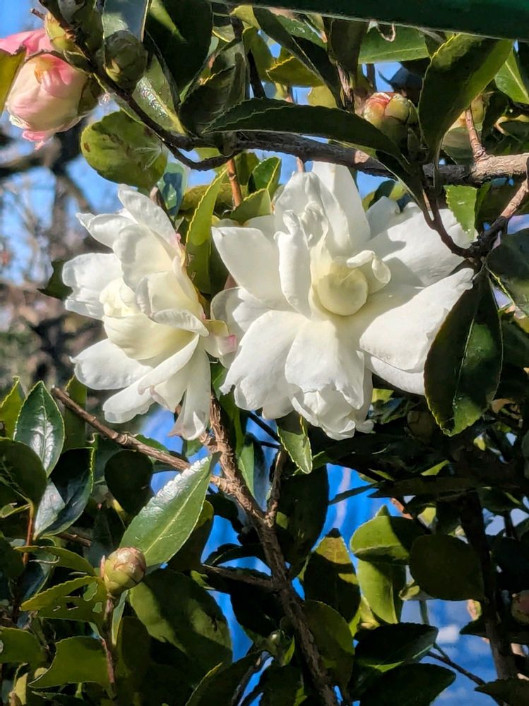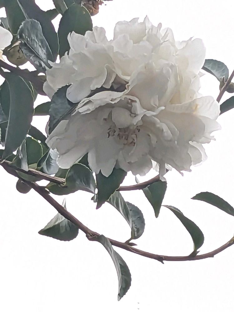 白い山茶花は、八重咲きが多いようです。(個人の感想です)とてもゴージャスです