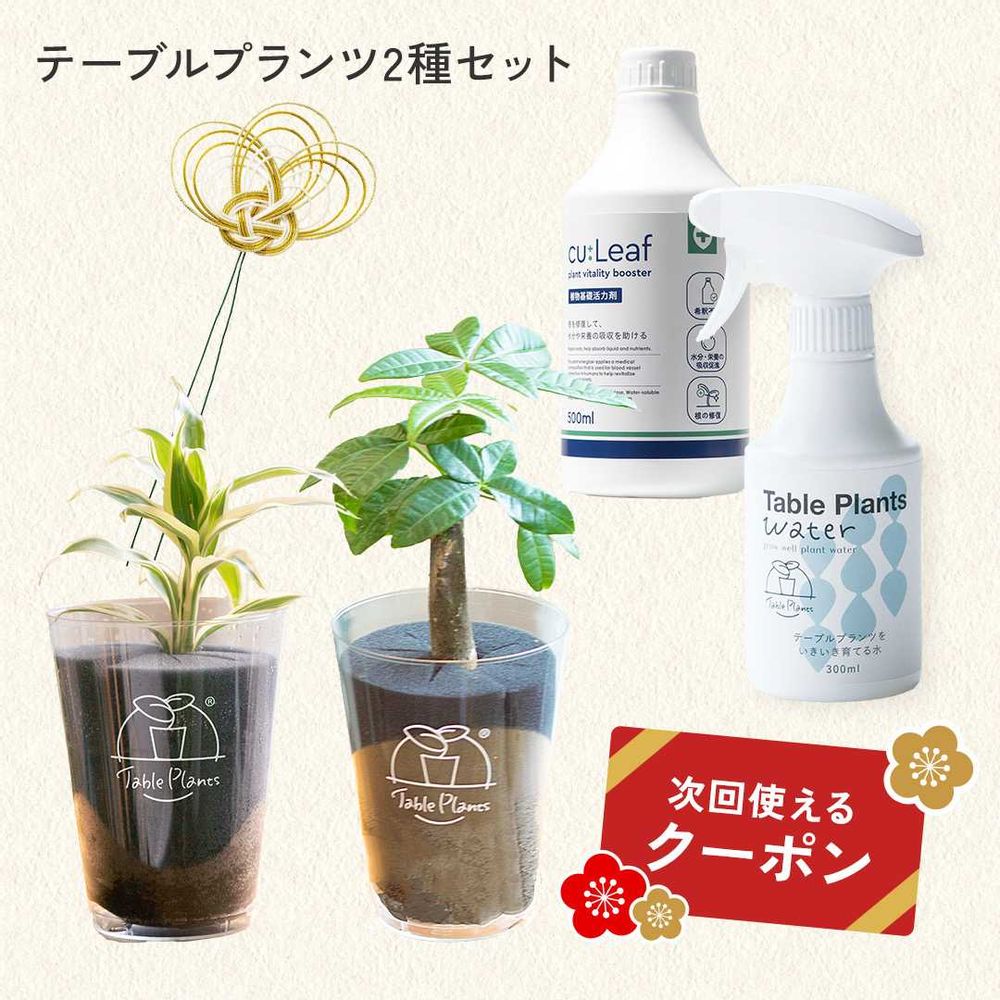 土を使わず清潔に観葉植物、テーブルプランツ(Table Plants)+GreenSnapオリジナル活力剤2種をセットにした2種類の福袋セット。