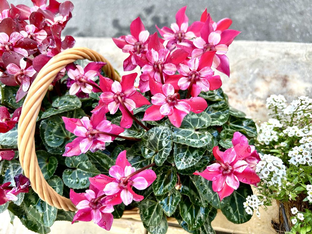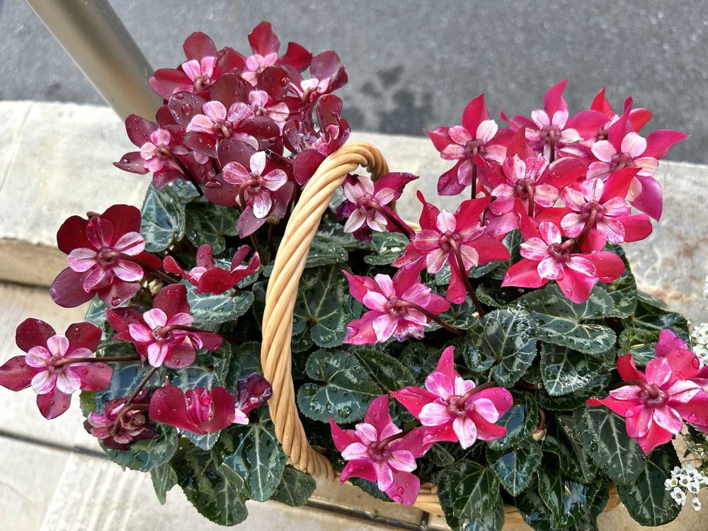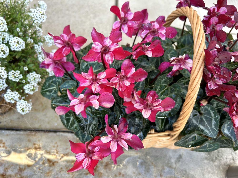 籠に入ったシクラメン2種、とっても可愛い〜(ㆁヮㆁ*)🎀