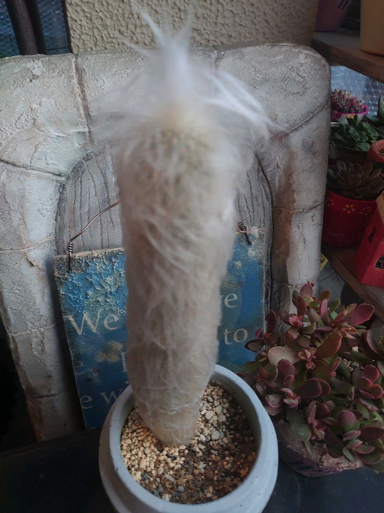 我が家の🌵のてっぺんに綿みたいにモフモフになってきたわ💦