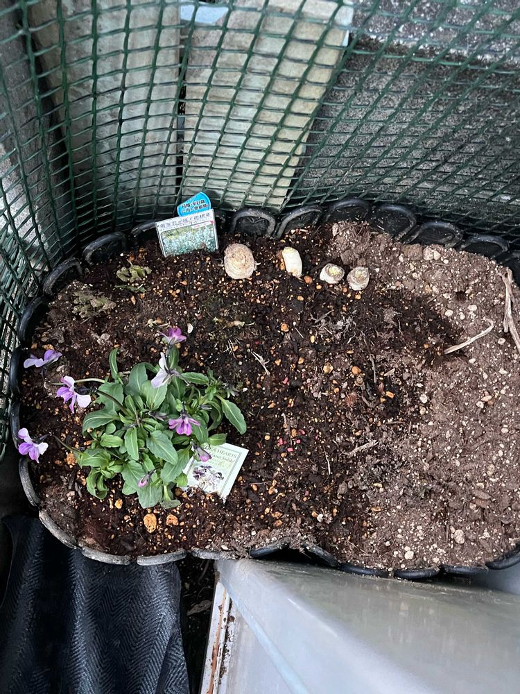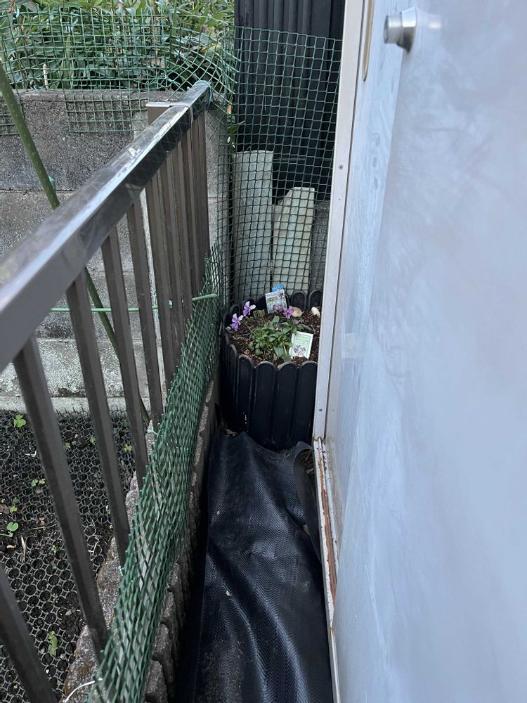 4.5枚目は狭〜い空間を茗荷畑にしたところ😅💦水遣り忘れないように手前にビオラ植えて空いてるところはネギやら三つ葉やらキッチンで使った根っこ植えました😂