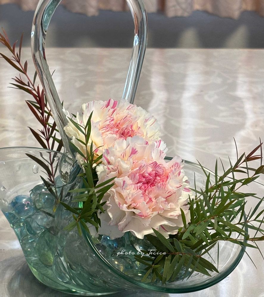 リビング・ダイニング,ビー玉とガラスの器,縞模様のカーネーションの投稿画像