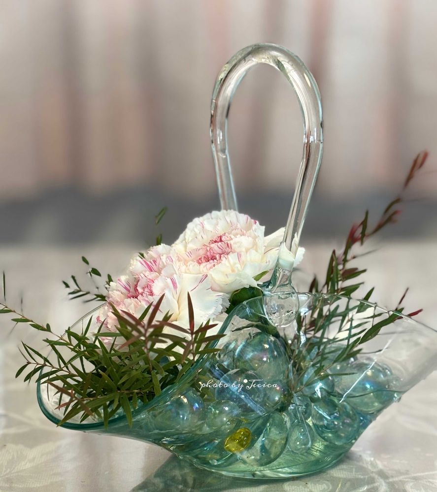花カゴ型のガラス花器