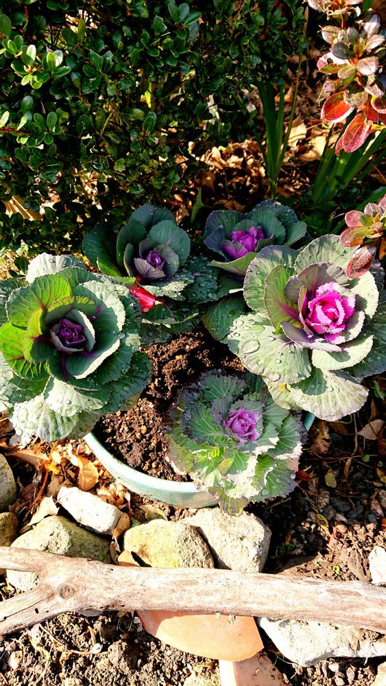 さっきHCで葉牡丹が値下げされていて、12個程入っている寄せ植え2,500円位だったのが、550円になっていたので、連れて帰りました〜ꉂ🤣𐤔💕