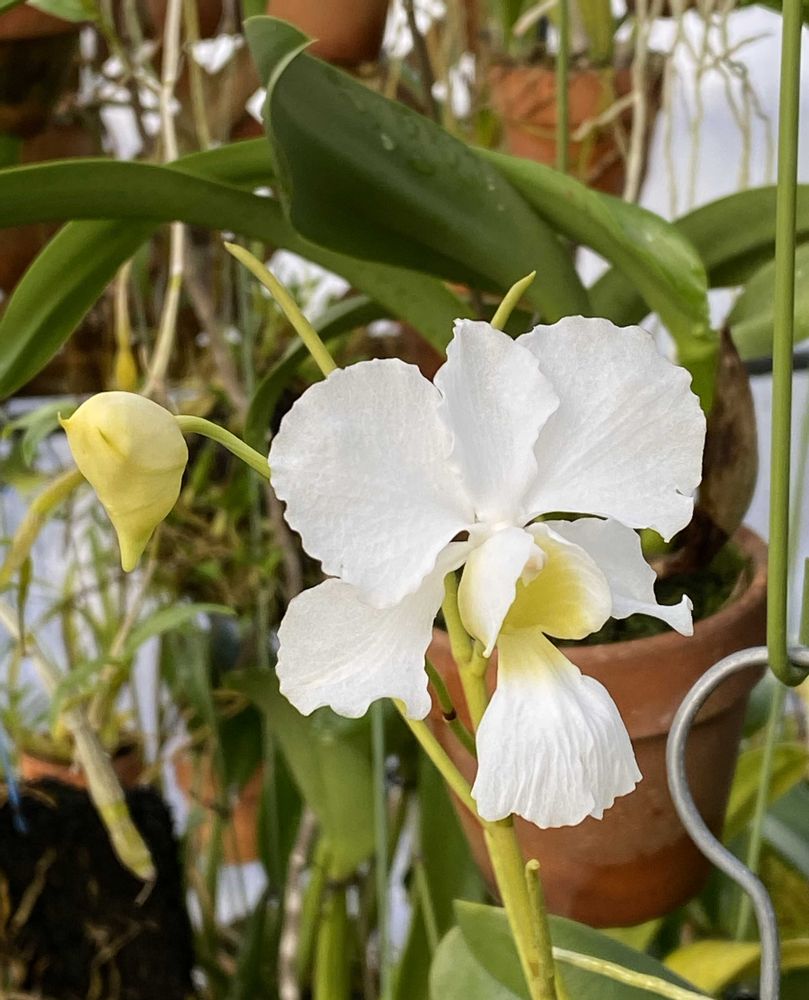 この花は、棒ランとも呼ばれるように、細くて丸い葉っぱ、茎も長くなりなります。