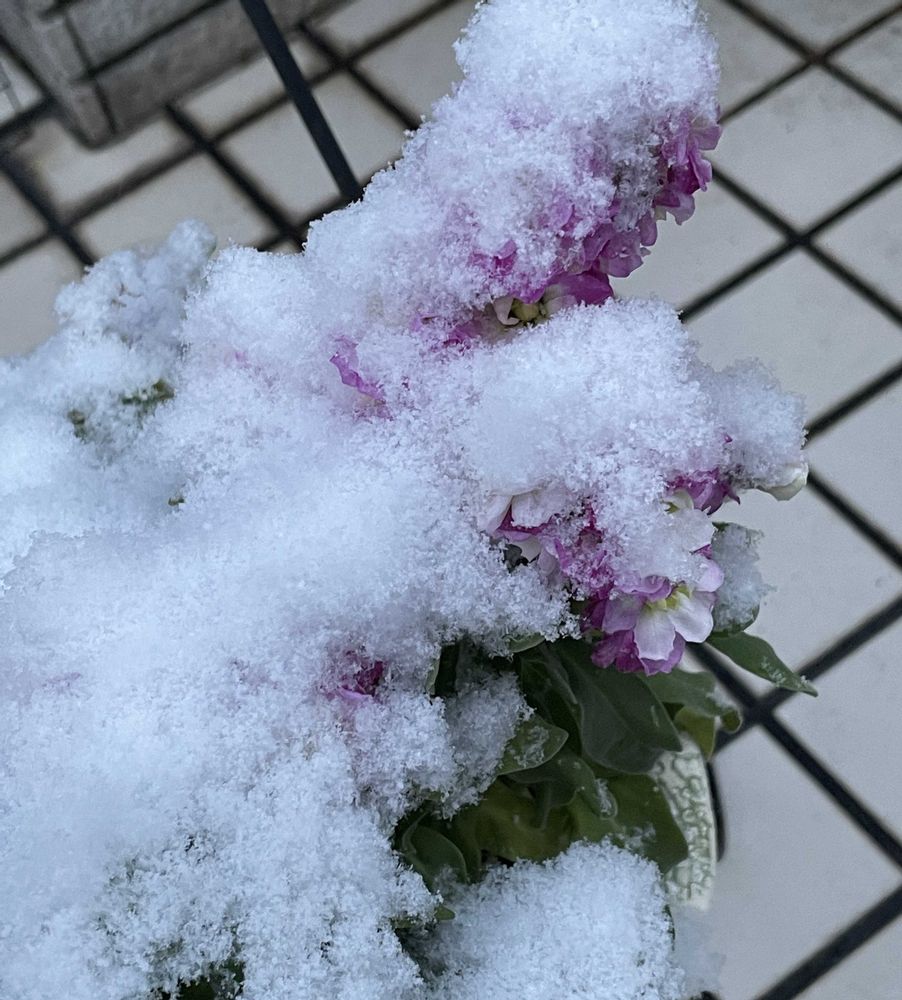 朝起きてびっくり‼️雪❄️が降ってました 今日の夕方から注意⚠️との予報だったので鉢植え避難してなかった💦💦